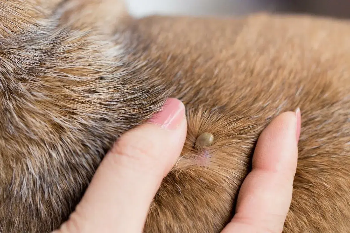 Насытившись кровью, клещ может отпадать самостоятельно или сохраняться в шерсти собаки. Поэтому оптимальным решением является осмотр тела питомца на предмет клещей после каждой прогулки на улице, особенно, в «зеленых зонах». Чаще всего клещи «выбирают» область вокруг шеи или морды – здесь собаке труднее всего их достать. Осматривая собаку, можно увидеть у основания шерсти, на коже, шарик около 1,5 см в диаметре. Это и есть туловище клеща. Если насекомое уже долго находится на теле и насосалось крови, его диаметр может достигать 2,5 см.